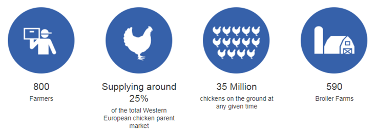 With 12 processing and manufacturing units in Northern Ireland, England, France and the Netherlands, the company processes over 280 million birds per year, in addition to producing around 200,000 tons of prepared foods per year. Its product portfolio comprises fresh and added-value poultry, ready-to-eat meals, pre-cooked meals, breaded and frozen foods, beef and pork products, vegetarian foods and desserts, supplied to major restaurant chains and retailers.